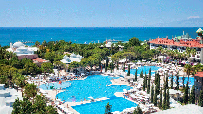 Kremlin Palace är en kopia på det överdådiga Kremlinpalatset i Moskva. Hotellet har en stor, trevlig trädgård och en lång, privat strand med en stor brygga. Det finns flera barer, nattklubb, kafé, stor bufférestaurang och inte mindre än fem à la carte-restauranger. Hotellet har ett stort och fint poolområde med flera pooler och vattenrutschkanor. Det finns även shoppingmöjligheter på området och faciliteter som åtta tennisbanor, gym och fitnesscenter, bastu, hamam, inomhuspool (uppvärmd vintertid), biljard, squash, volleyboll, bra joggingmöjligheter, bowling, spelrum och mycket mer. Hotellets aktivitetsteam ordnar motionspass och underhållning dagligen. Det finns även olika uppträdanden ett par dagar i veckan under högsäsong. Några aktiviteter/faciliteter mot kostnad.