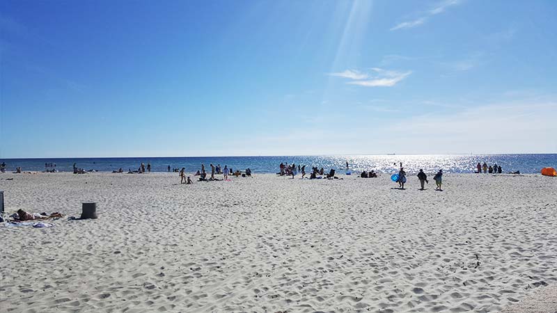 Här är vattnet kristallklart och sanden är vit och mjuk. De många strandkaféerna och restaurangerna gör badlivet här extra familjevänligt, och stränderna är även väl lämpade för aktiviteter som kite-surfing och vind- och vågsurfing. På Skanör-Falsterbo-halvön är de vita sandstränderna kilometerlånga. De känns igen på de karaktäristiska raderna av charmiga små badhytter i glada färger som kantar sanddynerna.
