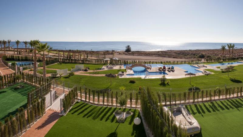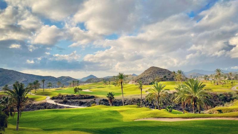 Desert Springs, mest känd som Europas enda ökenbana. Här har designern Peter McEvoy skapat en grön utmaning som invigdes 2001. När helst man besöker och spelar banan blir man alltid förvånad över att banan kan vara så grön. Nymålad? Längs de olika hålen träffar vi också troligen på Europas störst antal olika kaktusar där många av arterna är lågväxande och har blommor som gör spelarna förstummade. Banan är lättgången och vi rekommenderar att man går banan för bästa upplevelse både var som avser golfen och naturupplevelsen. Banan spelas relativt kort och mäter endast ca 5700 meter från gul tee och drygt 5100 meter från röd tee. Banan som avslutas med ett inspel på 18:e där publiken i den trevliga Crocodile restaurangen har god överblick över spelarnas inspels och puttningsskicklighet på banans kanske mest utmanande green.