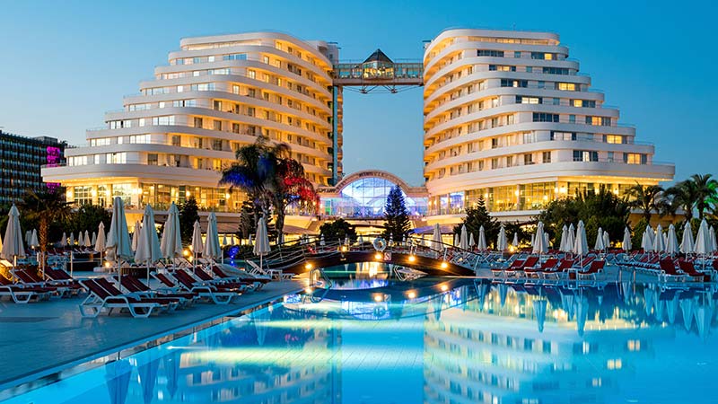 Hotellet ligger precis vid stranden och med fin havsutsikt. Hotellet ligger endast 19 km från Antalyas flygplats, vilket innebär snabb och smidig transport från/till flygplatsen.